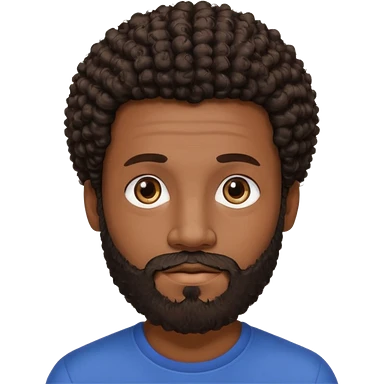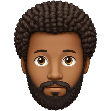 Medium brown skin man with beard and a tiny curly Afro fade with dark dark brown eyes emoji