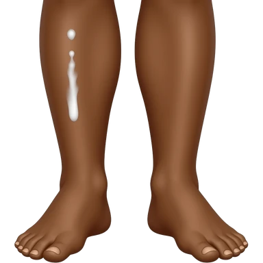DARKBROWN pair of bare legs with a streak of white lotion applied to the front of one shin emoji