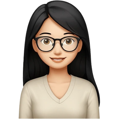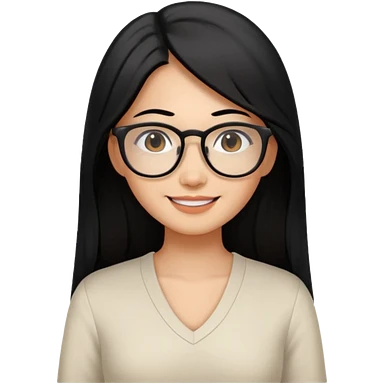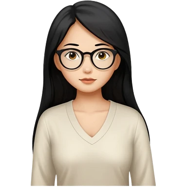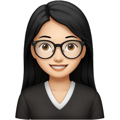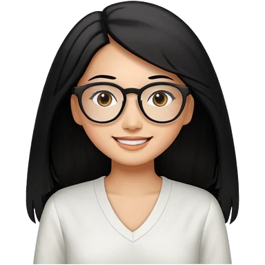 medium tan asian woman with long black hair past middle of back, round brown eyes, white v neck blouse. she has black thick frame glasses on. emoji