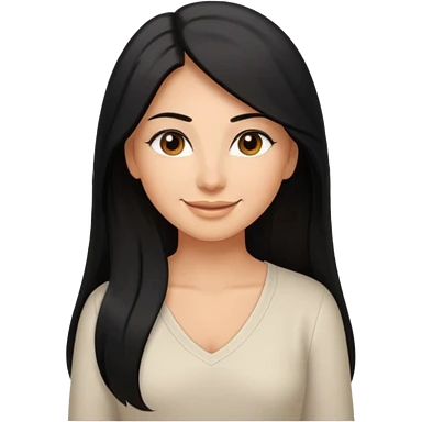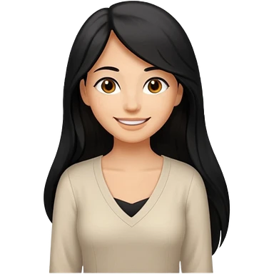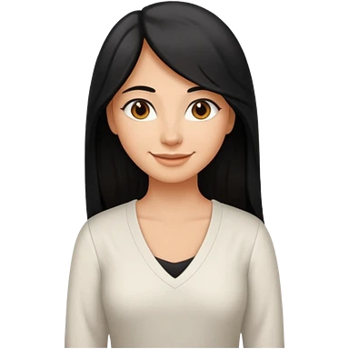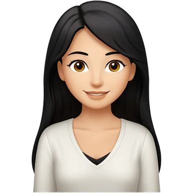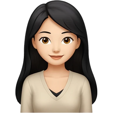 medium tan asian woman with long black hair past middle of back, round brwn eyes, white v neck blouse smiling. emoji | AI Emoji Generator