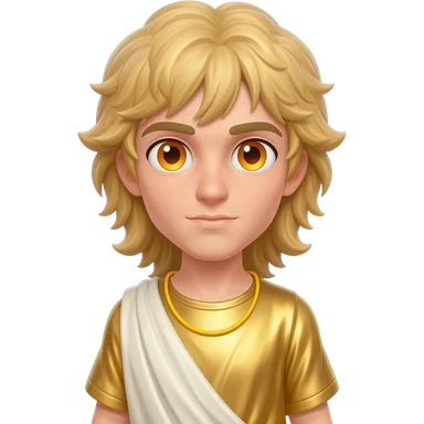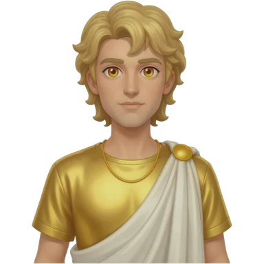 Apollo from Roman Mythology with amber eyes, long blonde hair, yellow metallic tunic, white metallic cloak emoji