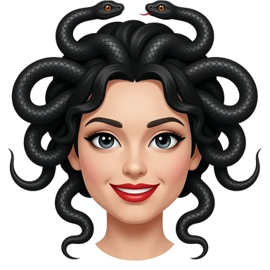 Medusa with black snake with red lipstick and a smirk emoji