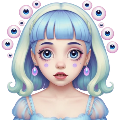 melanie martinez pink skin with four blue eyes and green hair emoji