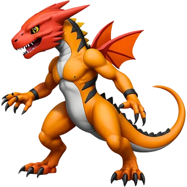 Cool edgy Agumon-Charizard-Digimon, full body emoji