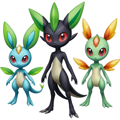 Meloetta-Celebi-Shaymin-Virizion-Zygarde-Electrike-Fakémon-fusion, full body emoji