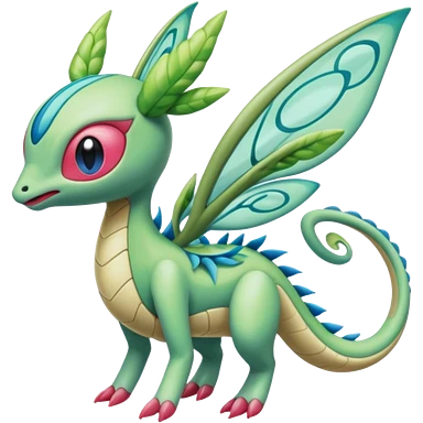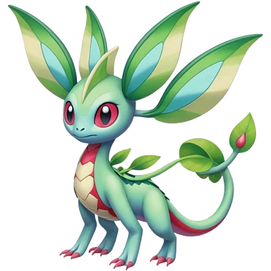 Exotic Tropical Rare Shiny Epic Ethereal Leafeon-Celebi-Flygon-Turtwig-hybrid, full body emoji