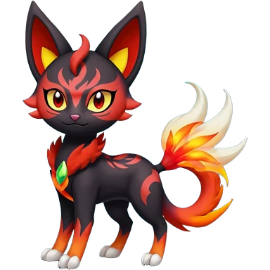 Colorful Meloetta-Litten-Guilmon-Darkrai-Pokémon-Fakémon-fusion-hybrid-creature with abstract markings emoji