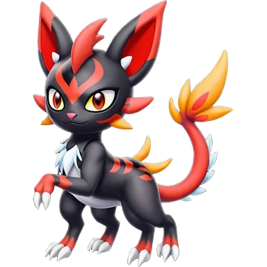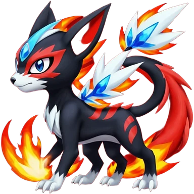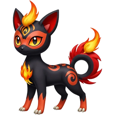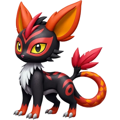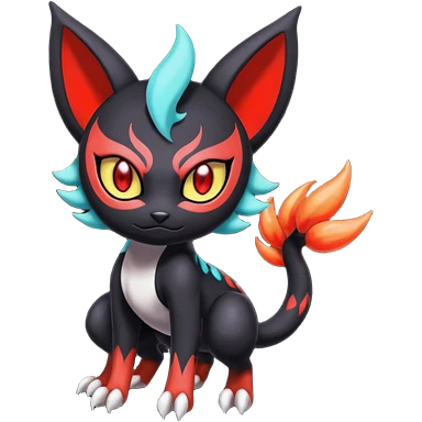 Colorful Litten-Guilmon-Darkrai-Pokémon-Fakémon-fusion-hybrid-creature emoji