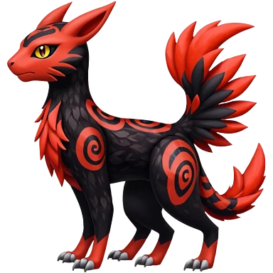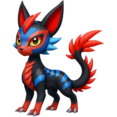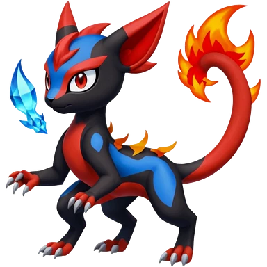 Red, Green, Black and Purple, Blue, Meloetta-Litten-Guilmon-Darkrai-Pokémon-Fakémon-fusion-hybrid-creature emoji