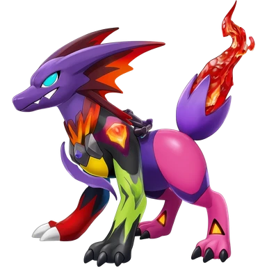 Colorful Cool Badass Meloetta-Litten-Noivern-Salandit-Guilmon-Darkrai-Pokémon-Fakémon-fusion-hybrid-creature emoji