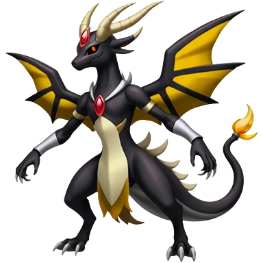 Black Cool Edgy Nargacuga-Houndoom-Garchomp Fakémon with Red Edgy markings emoji