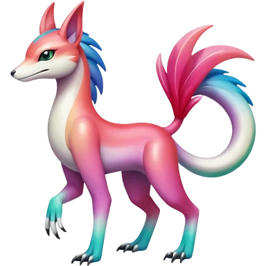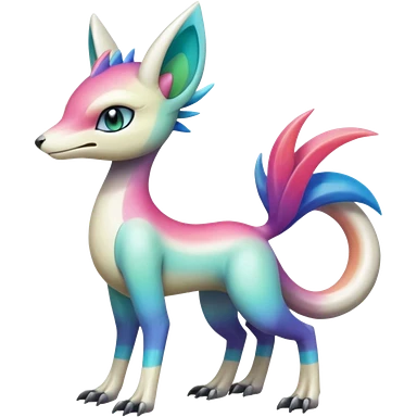 Colorful gradients-colored Meloetta-Sergal-Palkia-hybrid-fusion-Fakémon-creature, full body emoji
