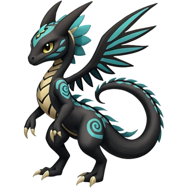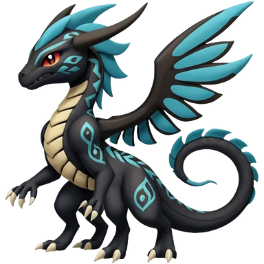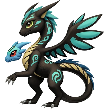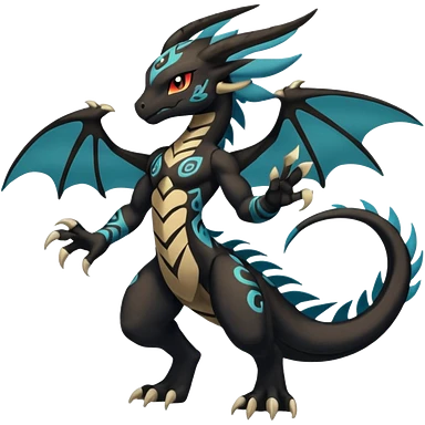 Black and Blue Venom-Charizard-Zekrom-Salandit-Sneasel-fusion, full body, tribal markings emoji