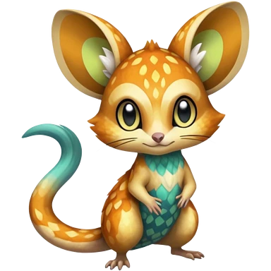 Shiny furry scaley Meloetta-Vernid-Trico-Gerbil-Genet-Pokémon-Fakémon-hybrid-fusion-creature emoji