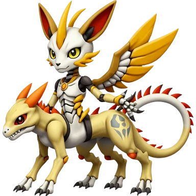 Digitigrade Cool Badass Skeletal Meloetta-Wargreymon-Renamon-Guilmon-Pokémon-Digimon-Fakémon-fusion-hybrid-creature emoji