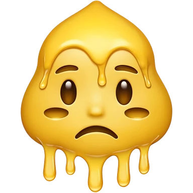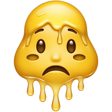 softly smiling crying face that appears to be melting downward, large glossy drip like emoji, combined with the smooth dissolving lower half similar to the melting face. ‘I’m okay :) but absolutely not okay’ emoji