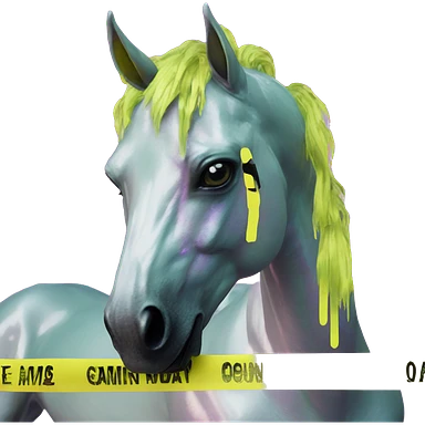 .Zombie_ Vaporwave black holographic oilslick zombie unicorn yellow caution tape graffiti Pegasus with prosthetic leg emoji