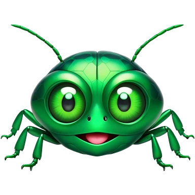 Meme-Worthy Cute Sleeping Green Bugdie Portrait Emoji, Head resting peacefully with a contented smile, showcasing a tiny, endearing build and a luxuriously smooth emerald exoskeleton, eyes shut in a serene nap, Simplified yet hilariously adorable features, highly detailed, glowing with a soft, drowsy light, high shine, relaxed and utterly lovable, stylized with an air of playful laziness, bright and heartwarming, soft glowing outline, capturing the essence of a comically sleepy insect, so meme-worthy it feels like it could instantly become the next viral sensation of adorable slumber!emoji