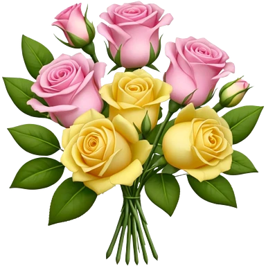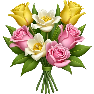 A mixed bouquet of pink roses and yellow lisianthus emoji