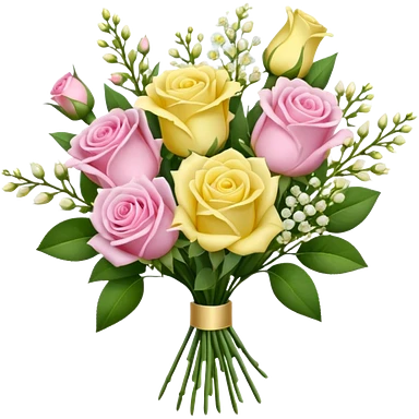 A mixed bouquet of four flowers, featuring pink roses and yellow lisianthus. emoji