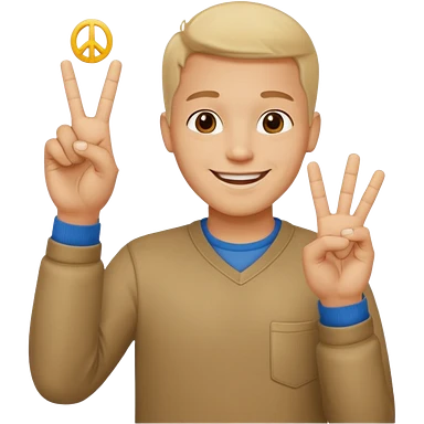 memoji face iphone: men, a solo hiker with happy face and a piece handsign emoji | AI Emoji Generator