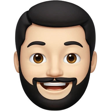 A 3D digital avatar, specifically an Apple Memoji, of a man with black hair and a black beard, winking with his right eye and smiling widely. He has blacl eyes. The image is a headshot on a white background. emoji