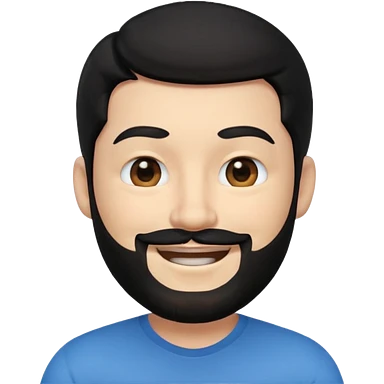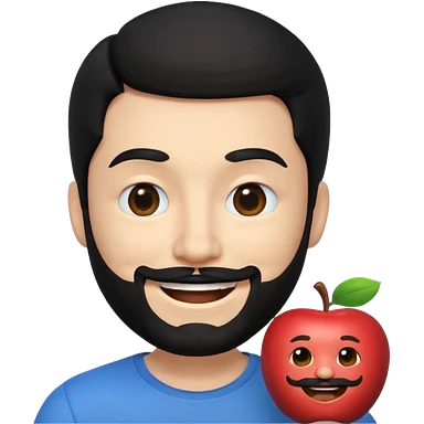 **"Apple-style memoji of a man with dark hair, black eyes, slight beard and mustache, wearing a black sweater. He sits at his desk with a laptop in hand, minimalistic and modern."** emoji