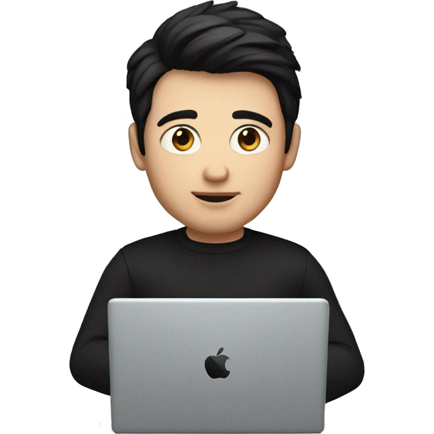 memoji of a man with a laptop in front, apple-style,modern,dark hair,black sweater,computer in hand,white skin, an avatar image gonna be round emoji | AI Emoji Generator