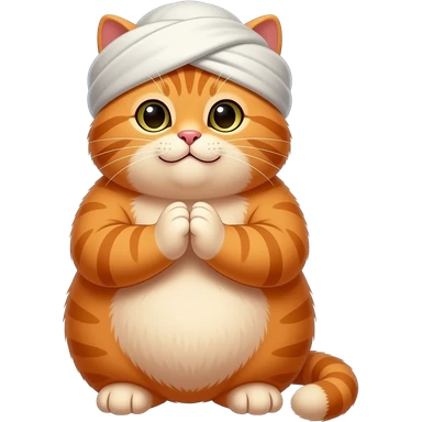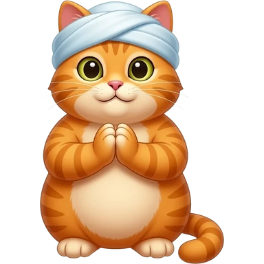 A fat orange cat with a muslim turban joins both front feet in prayer and say aameen emoji