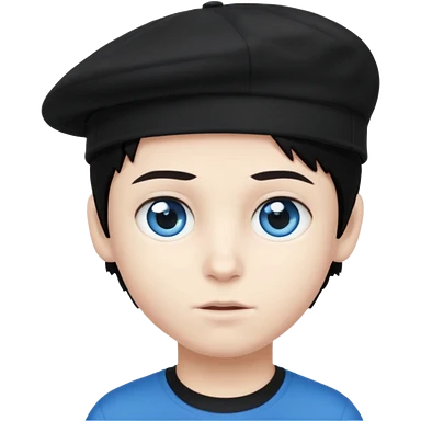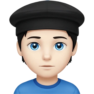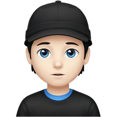 Menino branco de cabelo escuro, boné preto, olhos azuis emoji