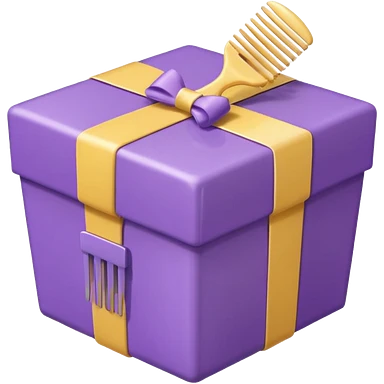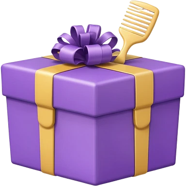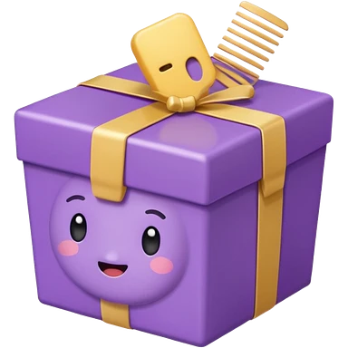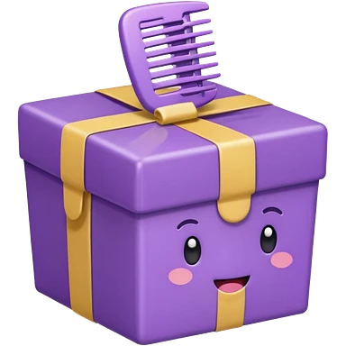 Kawaii emoji illustration of a purple gift box with a comb inside, chubby proportions, glossy finish, pastel colors, soft shading, adorable style, simple and clean design, transparent background emoji