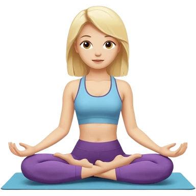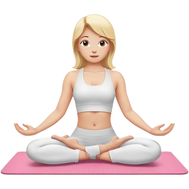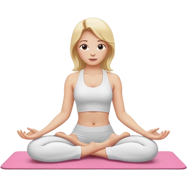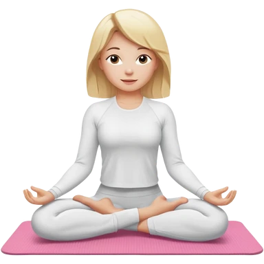 mulher fazendo yoga loira com roupa branca e tapete rosa emoji