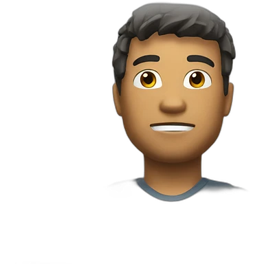 men holding his computer in hands. light brown skin men with curly black hair, dark brown eyes, little grown beard. just a tiny bit muscular. dressed casual. round face. emoji