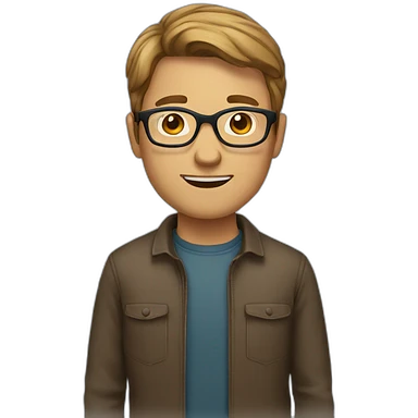 gay men light brown hair with glasses, blue eyes, look cute, skinny and white skin emoji
