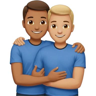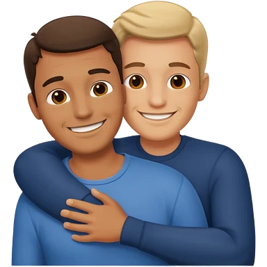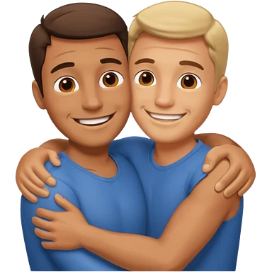 Two men hugging, one white with black hair, one brown with hlasses emoji