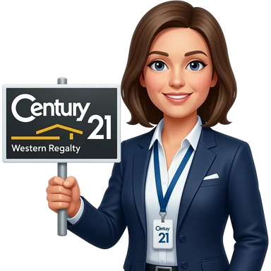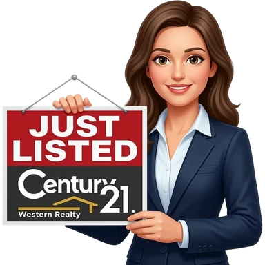 Female Real estate agent with century 21 western realty a just listed sign emoji