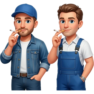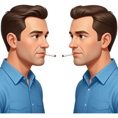 Two different blue collar men seeing each other smoking cigarettes emoji
