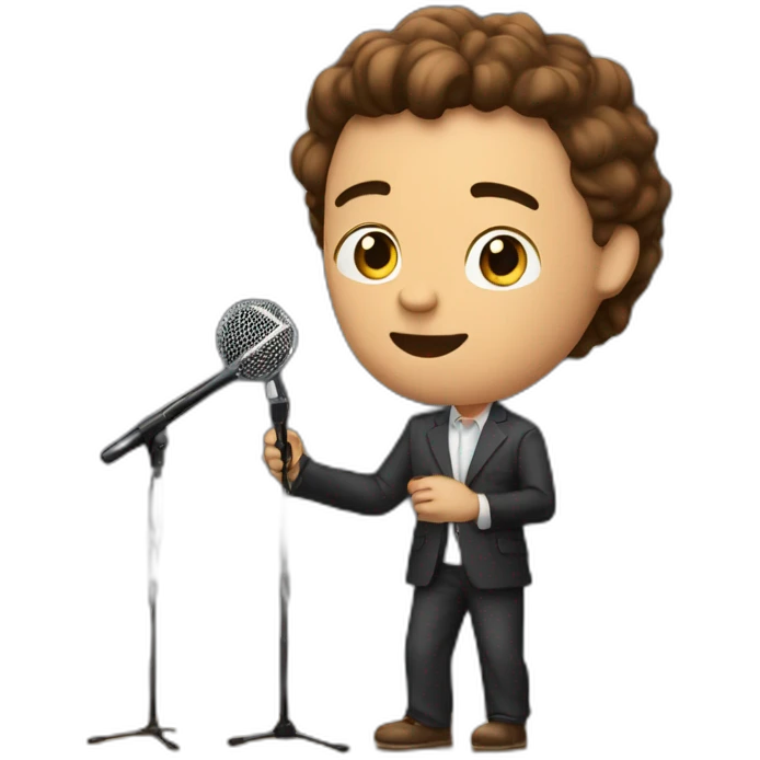 men with brown hair and light skin on stage spotlight with microphone stand in front of him with show spotlights on a stage emoji | AI Emoji Generator