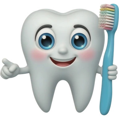 a animated human teeth that has a human face on it, holding a toothbrush emoji
