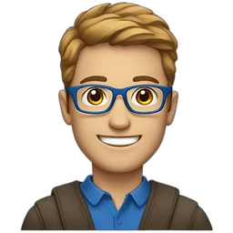 men with short fluffy dark hair and square glasses, bit smilling and looking on phone emoji | AI Emoji Generator