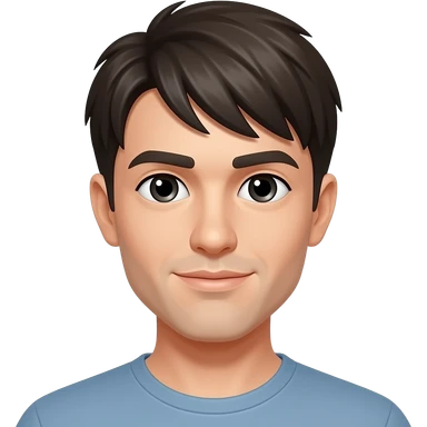 straight black haircut, white skin men, with brown eyes, and a little bit of beard emoji