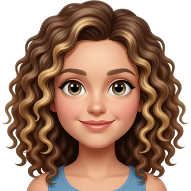 Menina branca, bonita, cacheada, com cabelo castanho e mechas loiras emoji