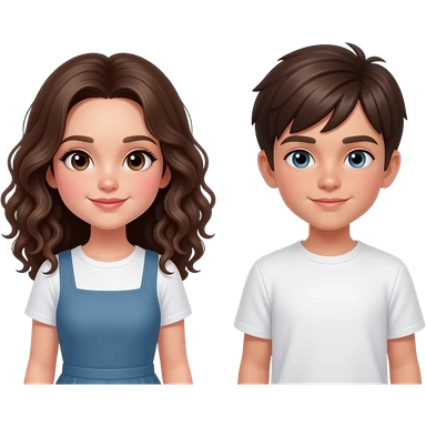 Menina moreninha do cabelo médio cacheado e menino branco do cabelo liso emoji