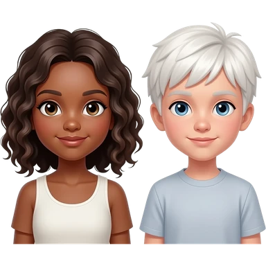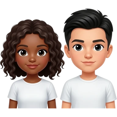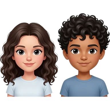 Menina moreninha do cabelo médio bem cacheado e menino branquinho do cabelo cacheado preto e olho preto emoji