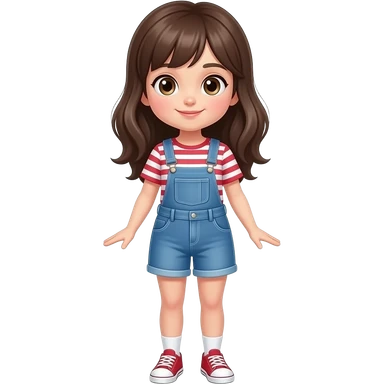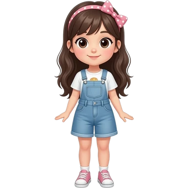 faça uma menina com cabelos lisos curto e franjinha com um oculos preto e roupas coquette emoji