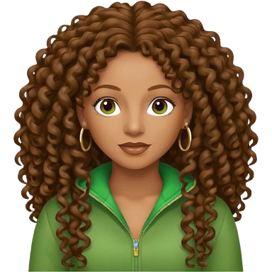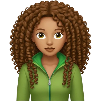uma garota zumbi de cabelo cor loiro mel forte, olhos castanhos escuros, o cabelo dela é cacheado e ela tem uma franja cacheada emoji