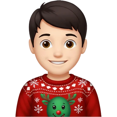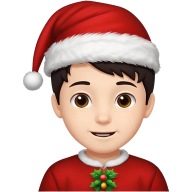 menino trajes natalinos e um olhar feliz e cabelo escuro emoji