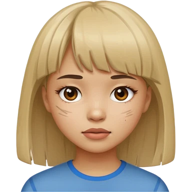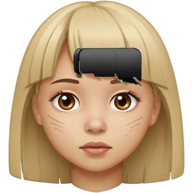 menina com a cara arranhada e franja emoji