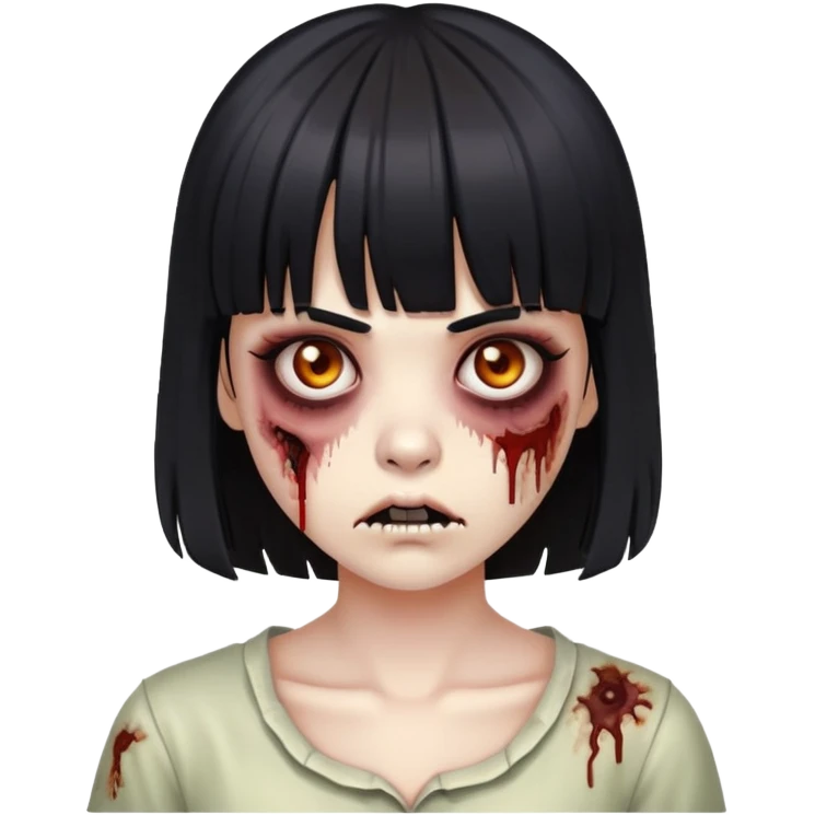 menina zumbi com cabelo preto e franja emoji | AI Emoji Generator
