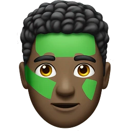 Menino pardo com cabelo curto cacheado preto raspado dos lados, de óculos preto e blusa verde e amarela emoji